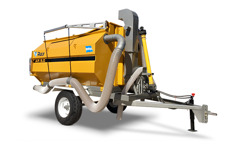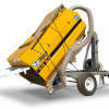 Made of sheet 1/8 "with dimensions of 2600mm x 1900mm long x 1400mm wide high. This tank has a capacity of 5 cubic meters of charge and has a standard hydraulic piston for discharging the material. At its top a sieve 1000mm long x 1000mm wide with access door is positioned.